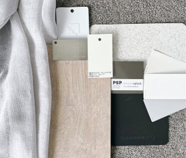 After an initial site meeting, the interior and exterior plans were drawn up and in November 2023, work began. Our client’s design preference favoured a simple, open-plan living concept with spacious bedrooms. A fresh white colour palette was chosen and this was complemented by warmer tones in the wood-look flooring and exterior timber decking, reflecting a classic, modern style inspired by their previous projects.